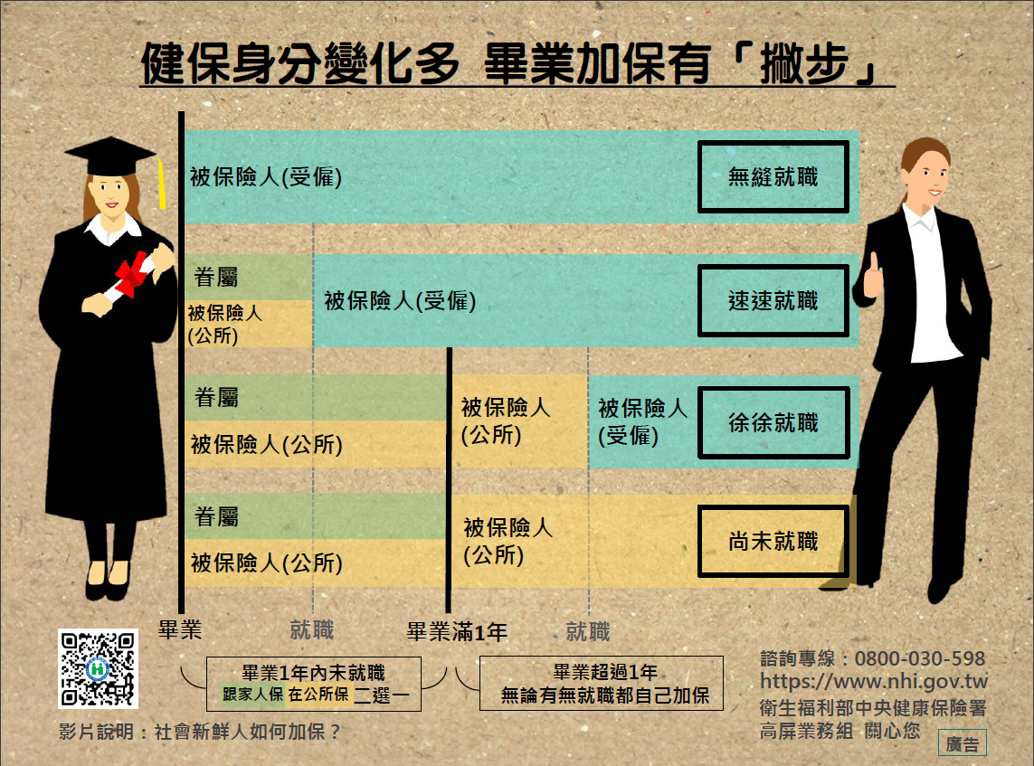 【健保資訊】【宣導】依附員工加健保之成年眷屬(子女)畢業滿1年且未婚者應改以被保險人身分加保