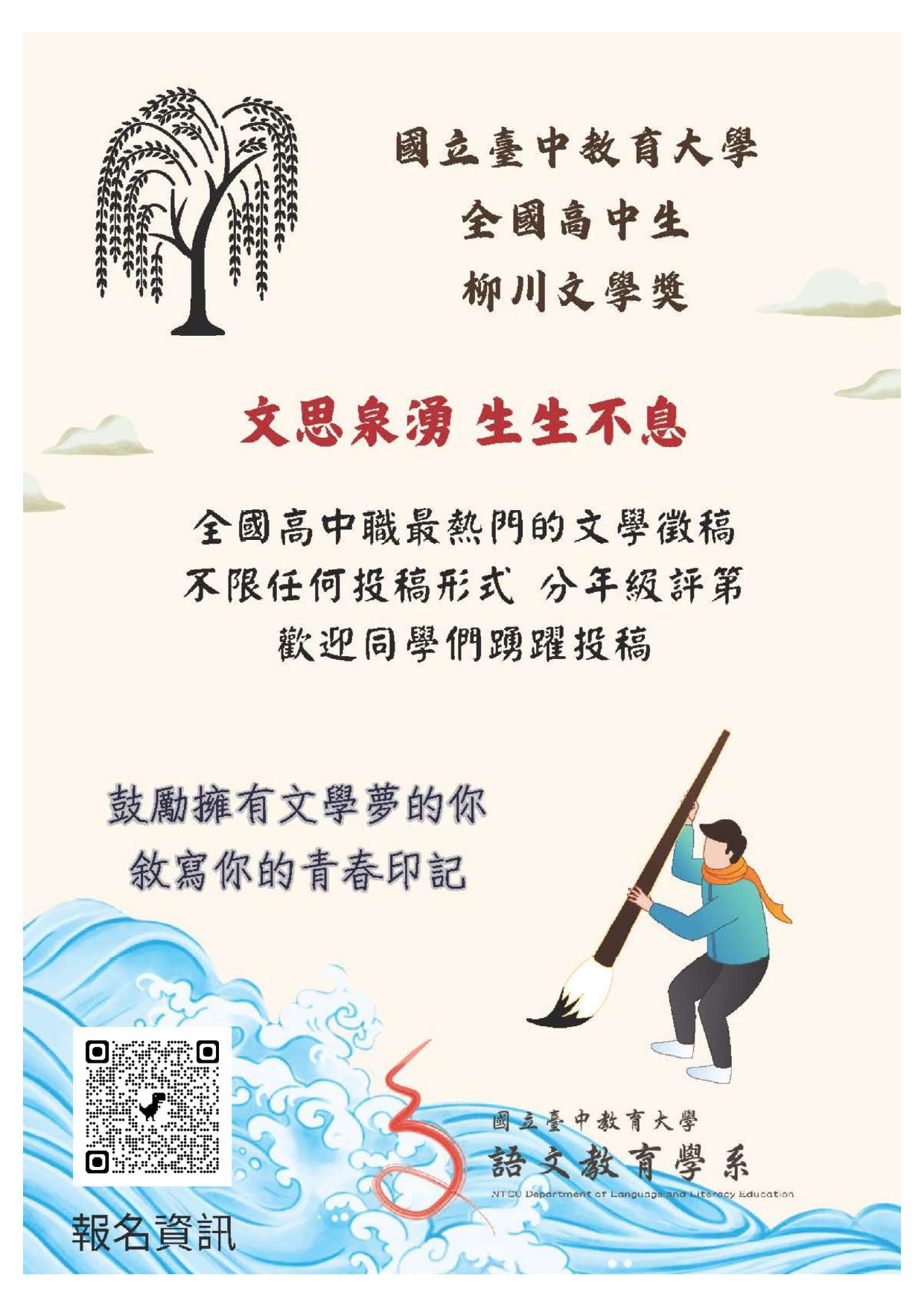 2026國立臺中教育大學語文教育學系高中生柳川散文獎