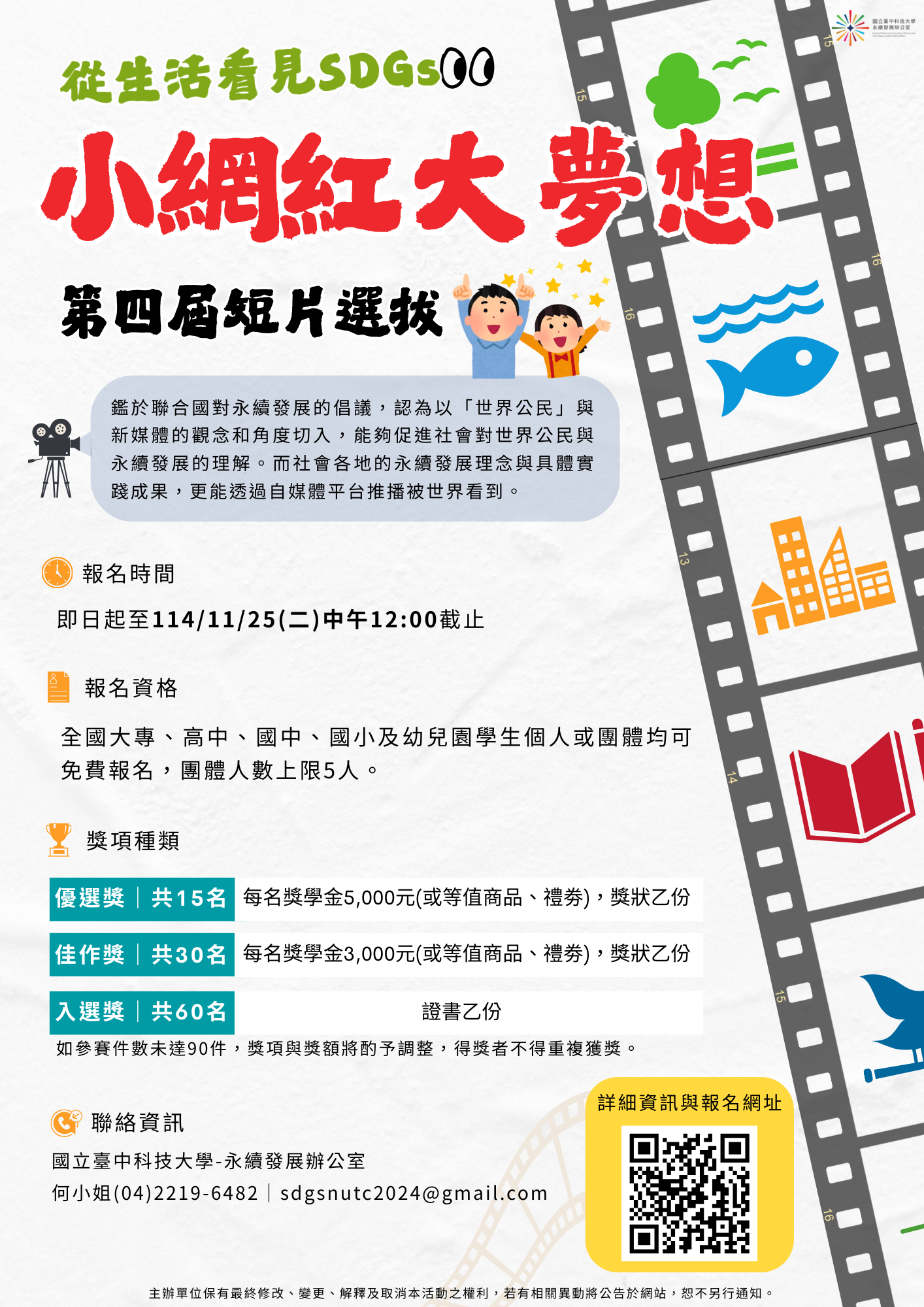 【國高中】台灣文化創意學會與台中科技大學共同辦理「小網紅大夢想」第四屆短片選拔活動