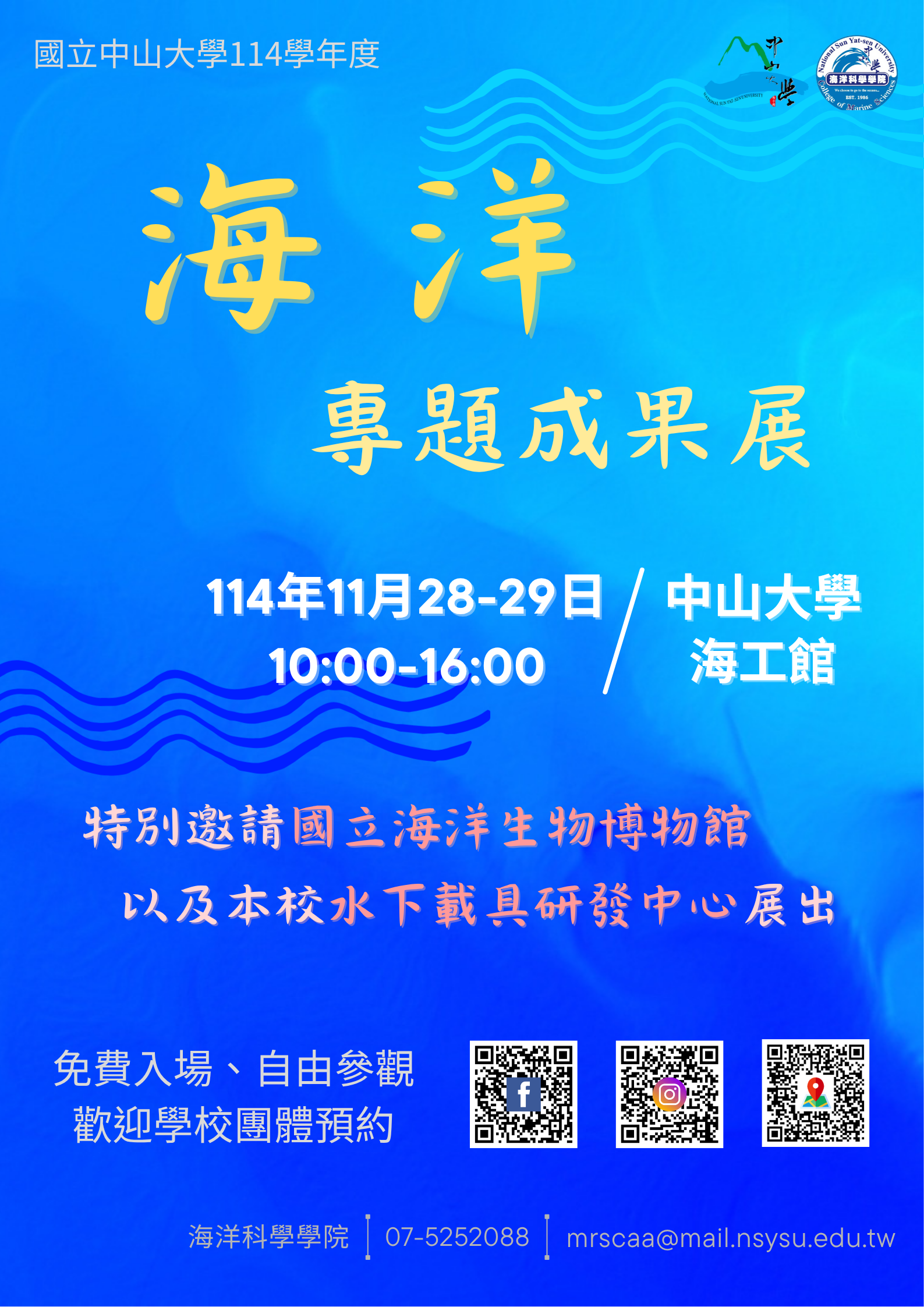 國立中山大學114學年度「海洋專題展」歡迎師生蒞校參觀