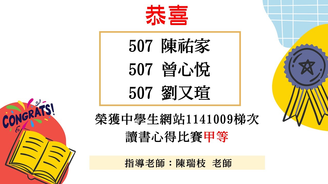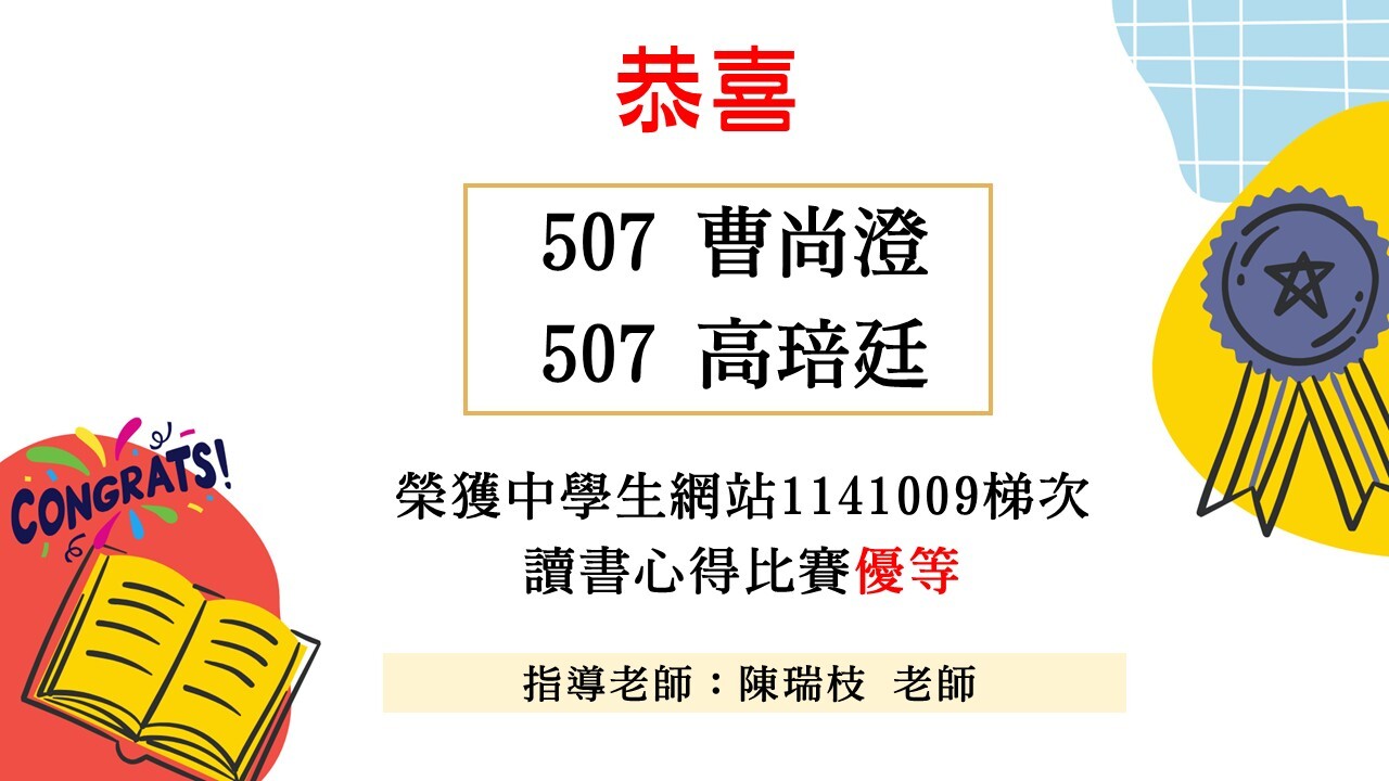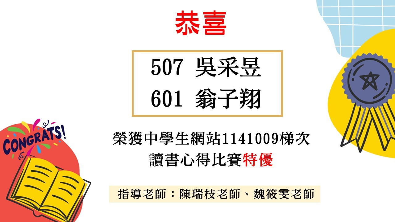 中學生網站讀書心得比賽1141009梯次得獎公告