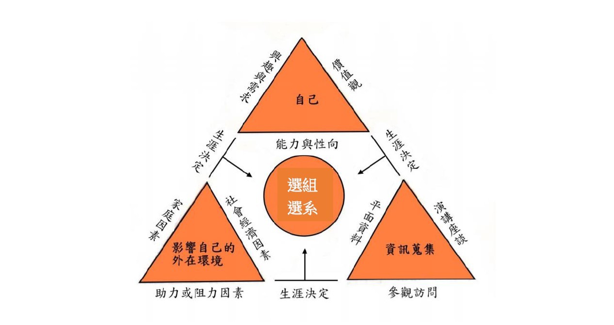(一)自我認識:從自己的興趣和專長出發,找到屬於自己的方向。 可以從施測結果與高一學業成就及校內外的各項活動的表現,以及個人的特質、興趣、價值觀瞭解,當然國中自己的狀態也可以納入思考喔。