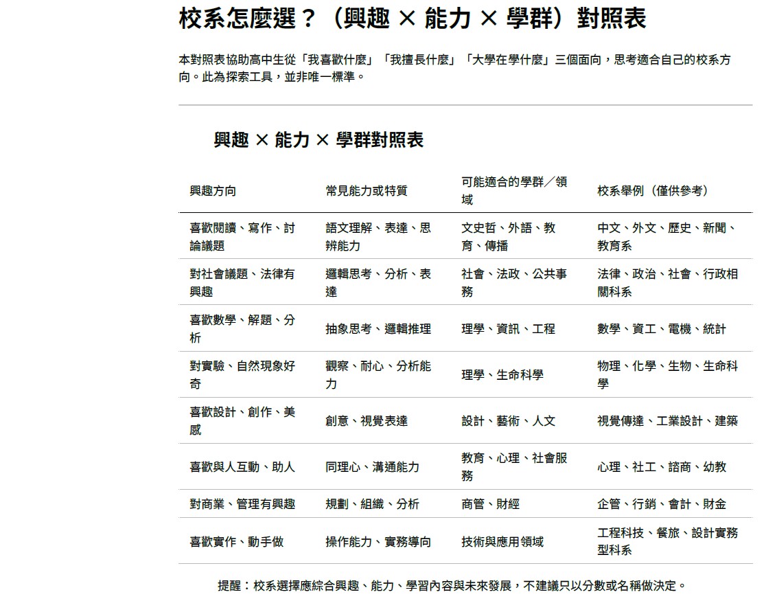 選擇校系不是一次就決定一生, 而是為下一個學習階段做準備。
