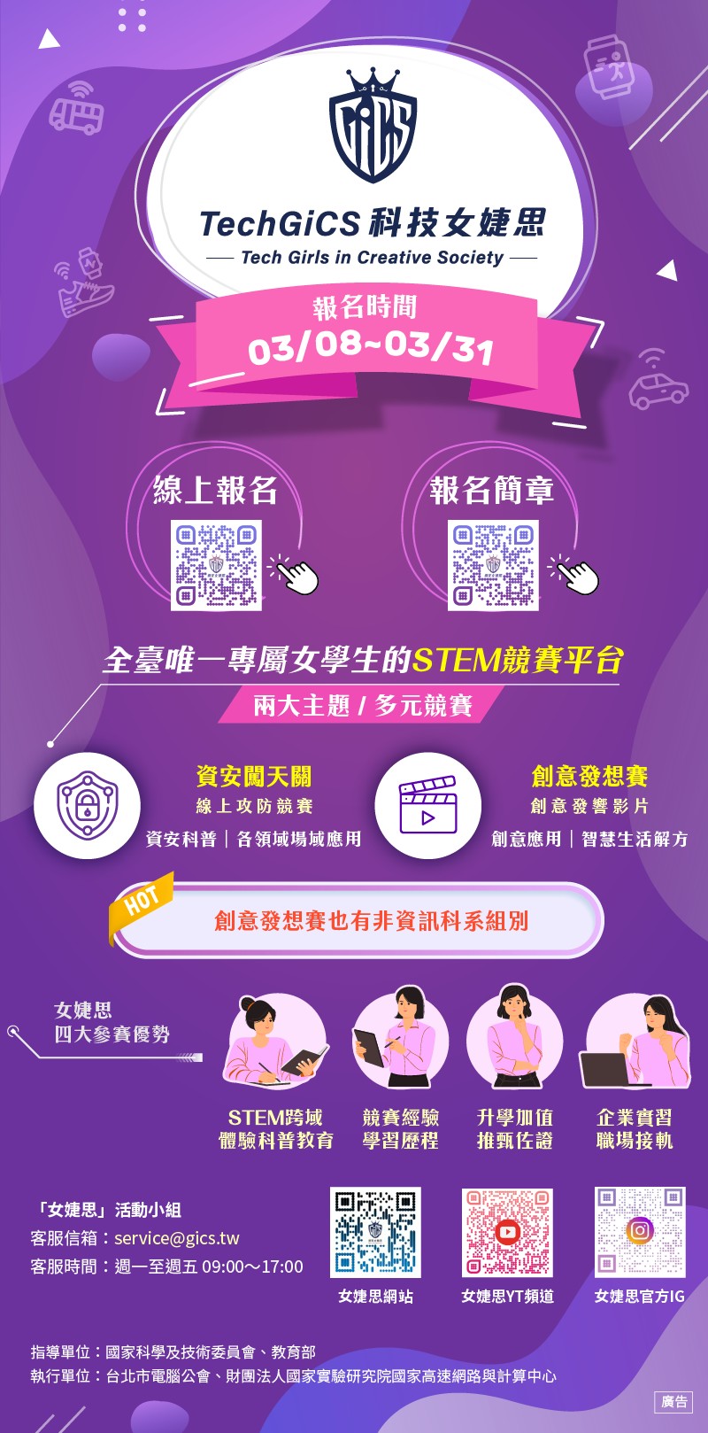(一) 報名時間:即日起至3/31( (二) 報名連結:https://gics.tw/Agreement (三) 簡章下載:https://gics.tw/Download